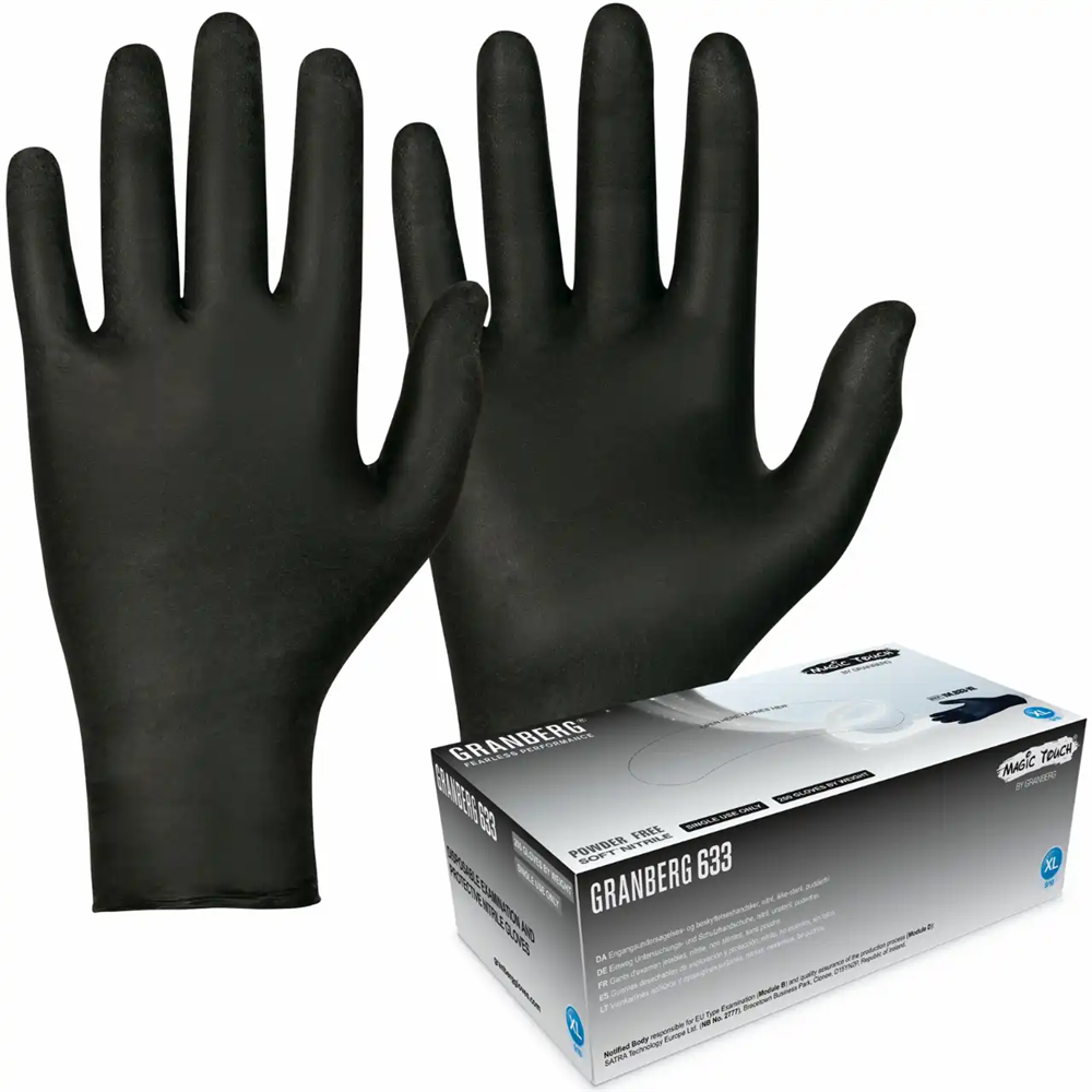 Vad vill du veta om Engångshandske nitril svart puderfri L?