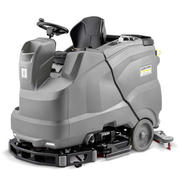 Den åkbara kombiskurmaskinen B 150 R med sidoskurdäck, 90 cm arbetsbredd och skrapa av senaste generationen för optimala rengöringsresultat och en ytkapacitet på 7 200 m²/h.