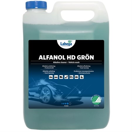 Alfanol HD Grön är ett alkaliskt avfettningsmedel som är lämpligt för fordonstvätt. Medlet är kraftfullt och medelskummande och är ett bra val för miljön utan att ge avkall på effekt. Löser snabbt effektivt smuts som vägdamm, trafikfilm, vägsalt, bromsdamm, fett och insekter. Medlet är fritt från silikater.